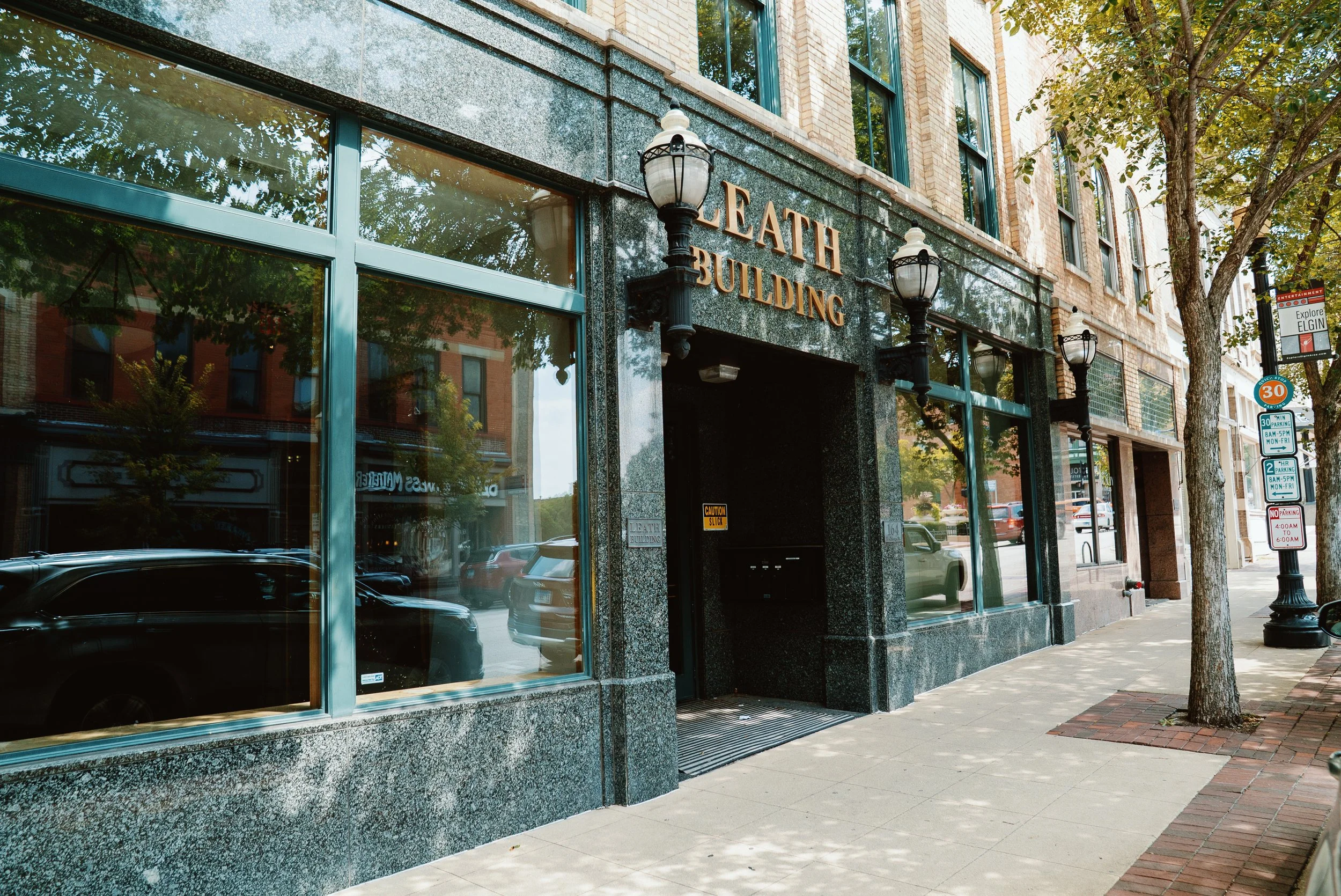 Our downtown Elgin offices are located on the first and second floors of the “Leath” building.